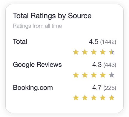 We will automatically collect reviews from top travel platforms. Your report aggregates for free Google and Booking.com reviews. You can unlock more sources with paid option.