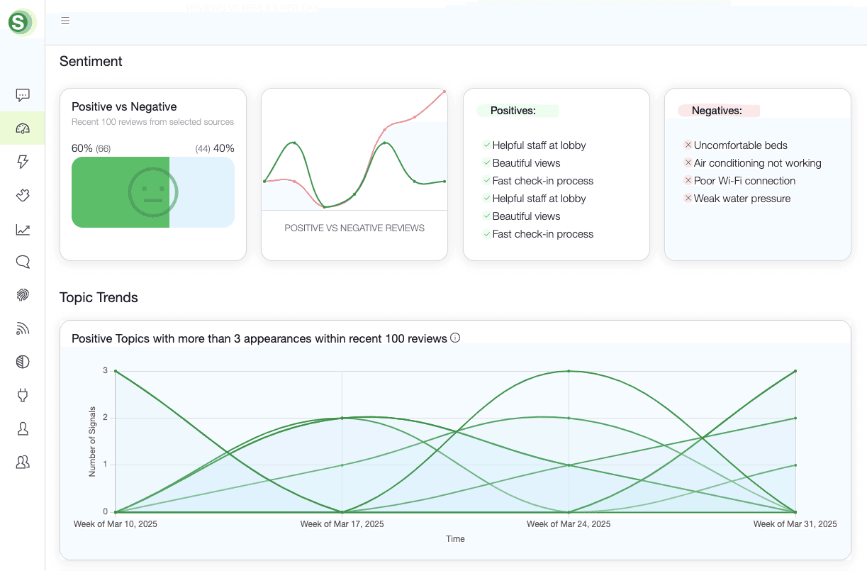 Hotels that swiftly address negative reviews can see a 12.6% increase in conversion rates, while daily sentiment analysis enables dynamic pricing adjustments, leading to improved occupancy and revenue per available room.