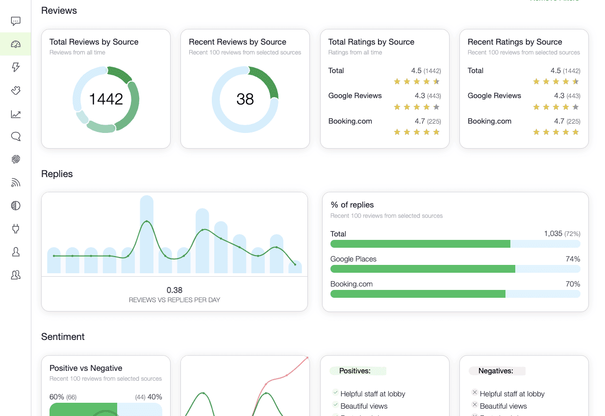Łatwo zobacz każdą opinię gości z wielu platform w jednym panelu. Nasz system zbiera opinie ze wszystkich najważniejszych źródeł, dając Ci pełny obraz reputacji Twojego hotelu. Oszczędzaj czas, szybciej dostrzegaj trendy i podejmuj trafne decyzje bez potrzeby przełączania się między platformami.